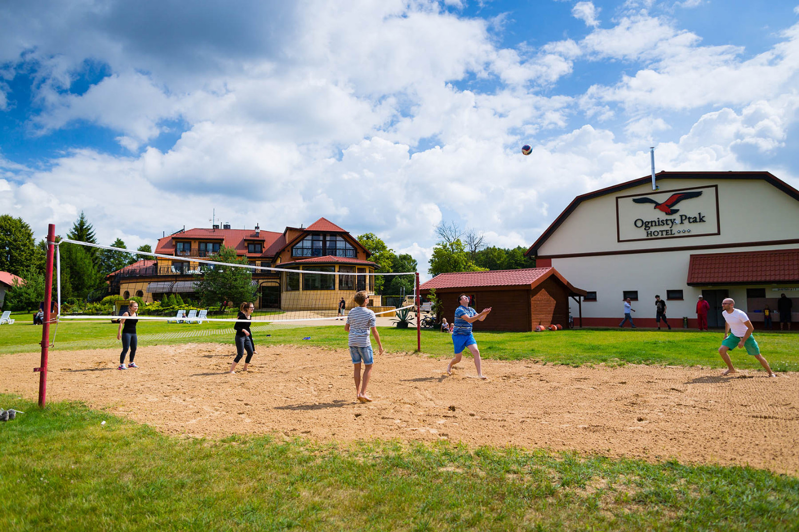 Размешчаны на Мазурах, гэта ідэальнае месца для адпачынку, для правядзення спецыяльных мерапрыемстваў, інтэграцыйных паездак або бізнес-трэнінгаў. Спалучае ў сабе тое, здавалася б немагчыма сумясціць - камфорт і раскоша, удалечыні ад горада і блізка да прыроды. Непаўторная атмасфера, сучасны і стыльны інтэр'ер і выключны сэрвіс - несумнеўныя вартасці гатэля, а таксама яго размяшчэнне - у самым цэнтры Мазур на возеры Свенцайты. Ідэальнае месца для сем'яў з дзецьмі і ўсіх, хто хоча адпачыць ад гарадскога шуму, актыўна правесці час, паклапаціцца пра здароўе і прыгажосці, а галоўнае - расслабіцца. Гасцей чакаюць шмат цікавых забаў, аздараўленчая ўстанова SPA і шмат спартыўных і рэкрэацыйных аб'ектаў. Камфартабельныя нумары і круглагодныя бунгала, пышная кухня і канферэнц-інфраструктура зробяць Ognisty Ptak унікальным гатэлем на Мазурах.